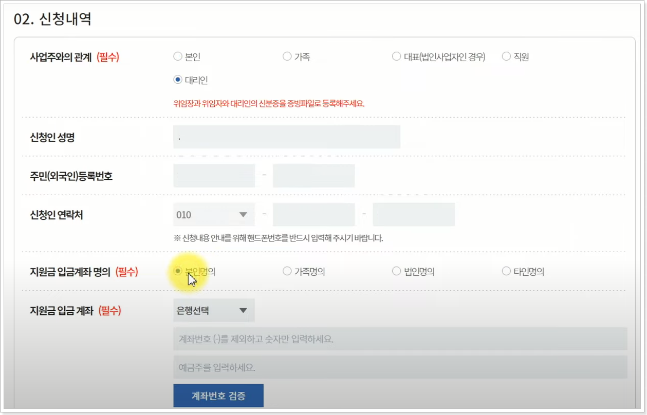 | ➁ 계좌압류 등으로 타인계좌 수령 희망 시 ※ 법인은 법인명의 계좌만 가능 |
