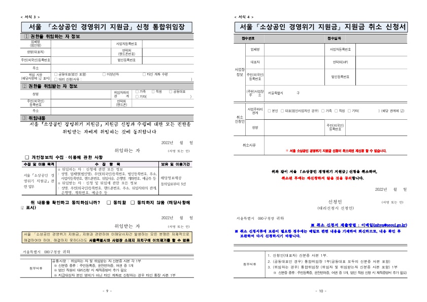 ① 통합위임장 ② 대표자와 수령인의 신분증 사본 |