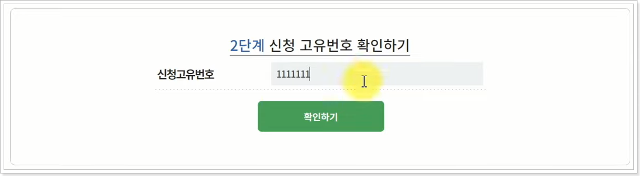 4. 받은 문자를 통해 확인된 고유신청번호를 입력합니다.