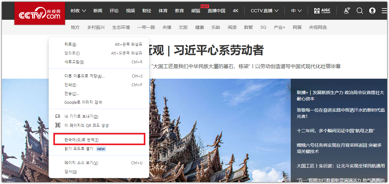 1. 중국 국영방송 CCTV를 검색하여 접속합니다.