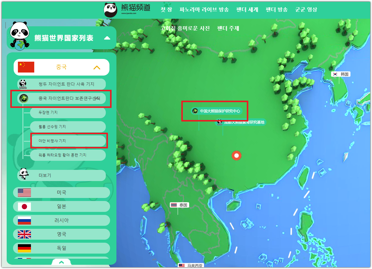 5. 중국자이언트판다 보존연구센터(中国大熊猫保护研究中心)의 아얀 비펑샤기지(雅安碧峰峡基地)를 선택 합니다.
